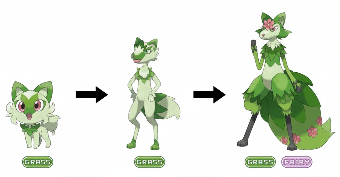 Sprigatito Evolution Line (Grass → Grass → Grass/Dark)